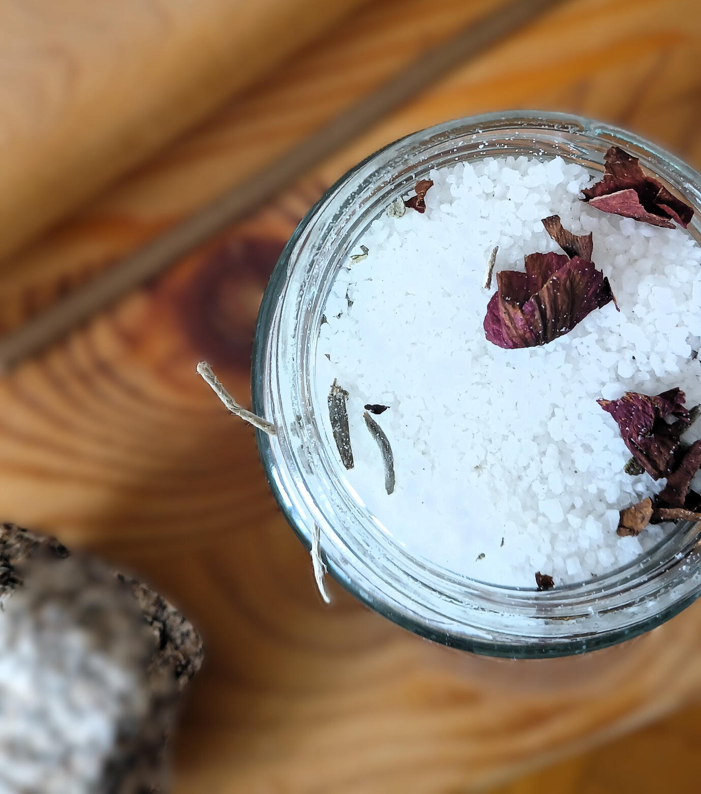 Aromatic scents of Rose Geranium in Sea Salt, spiced with Rose Petals and Lavender bits.